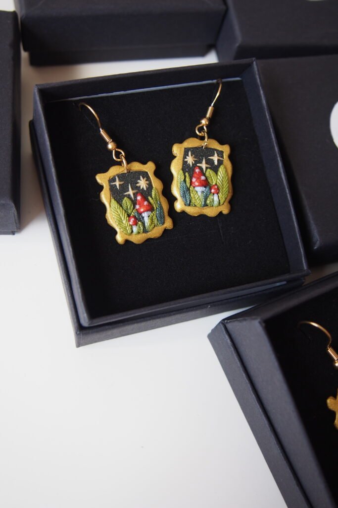 Here, the real beauty is found not in perfect symmetry, but in the unique character and charm of a piece made thoughtfully by hand. So whether it’s a pendant of an enchanted forest or a pair of vibrant, colorful earrings, I hope it brings a little of that ‘perfectly imperfect’ magic to your day.