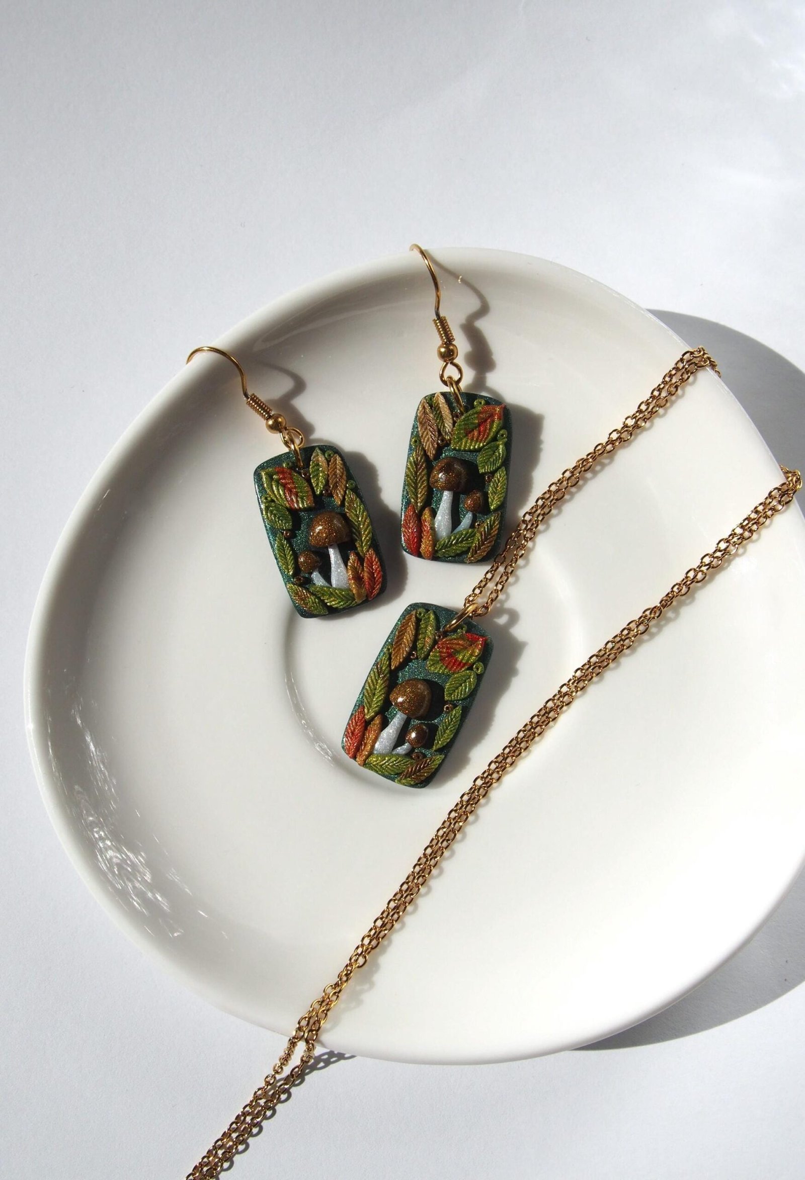 Complete the Set: This necklace has a pair of matching earrings! You can find them here: https://shinyimperfections.etsy.com/listing/4380703229/cottagecore-mushroom-earrings-handmade