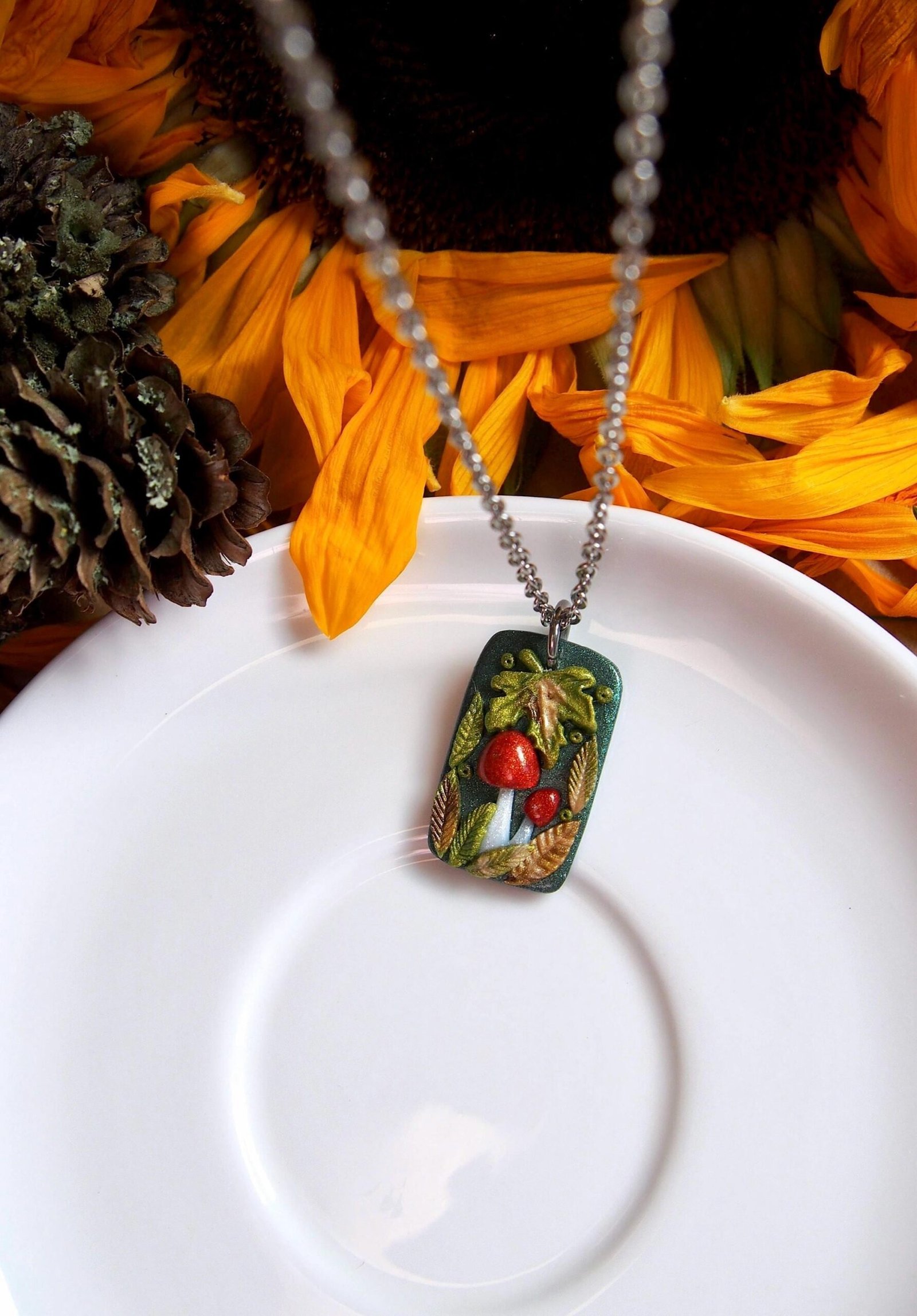 Inspired by the quiet magic of an autumn forest, this cozy mushroom necklace is a piece of wearable art that you can carry with you.
