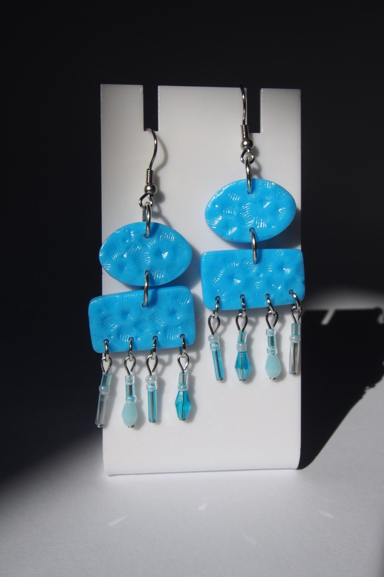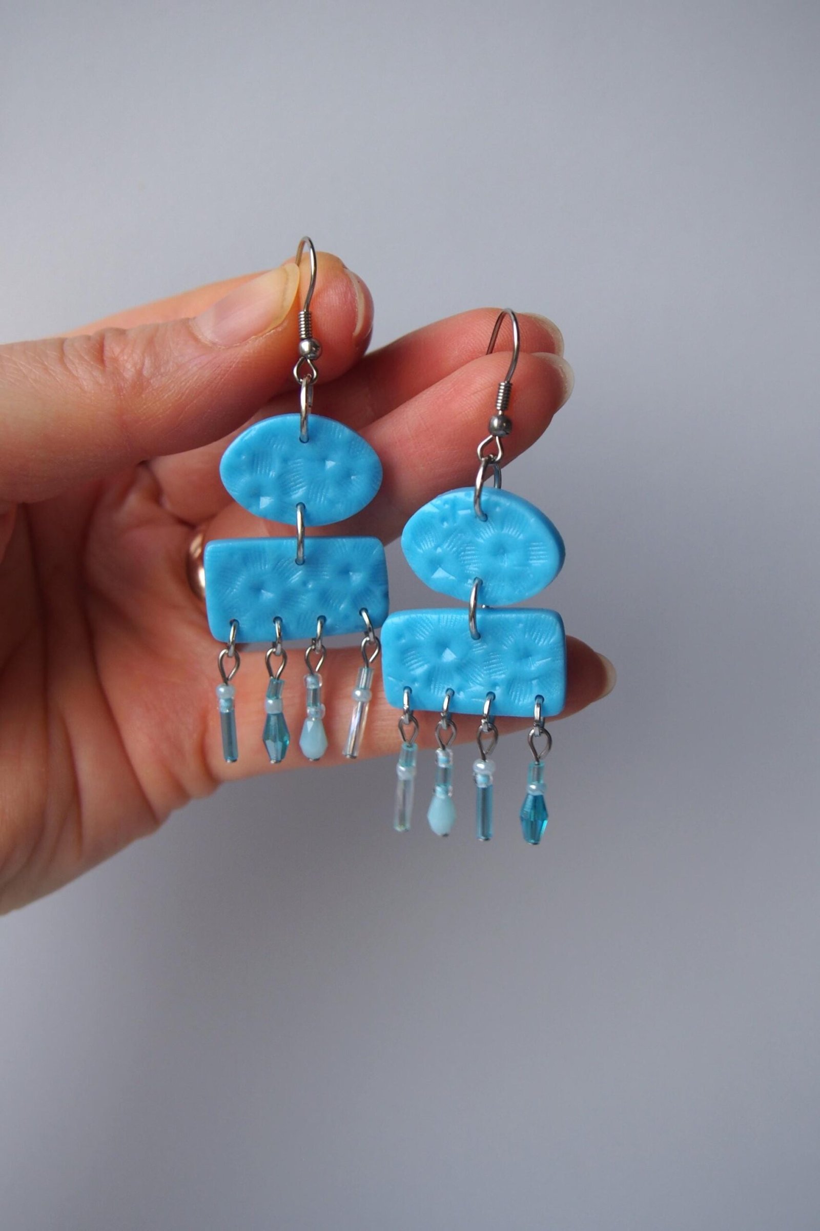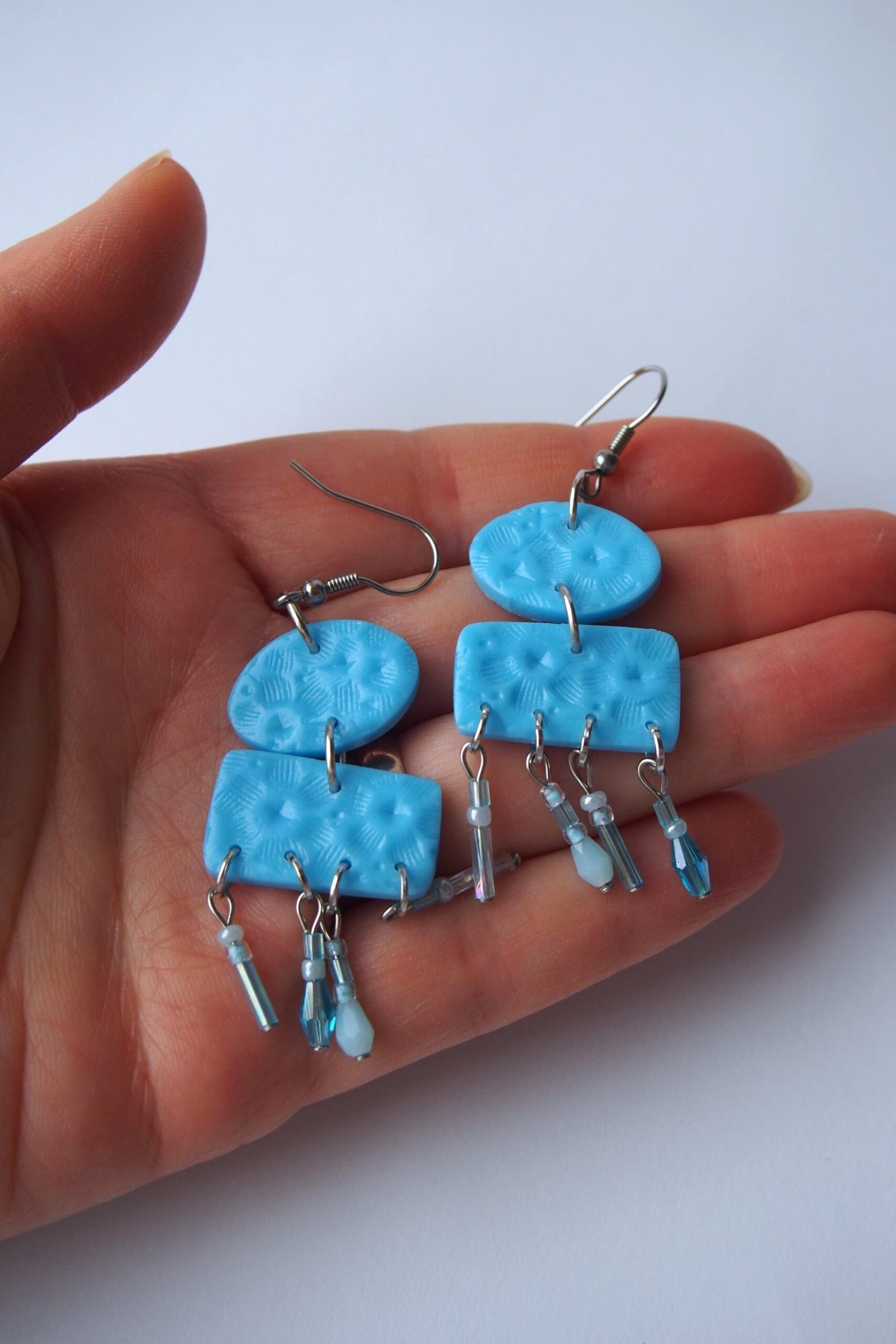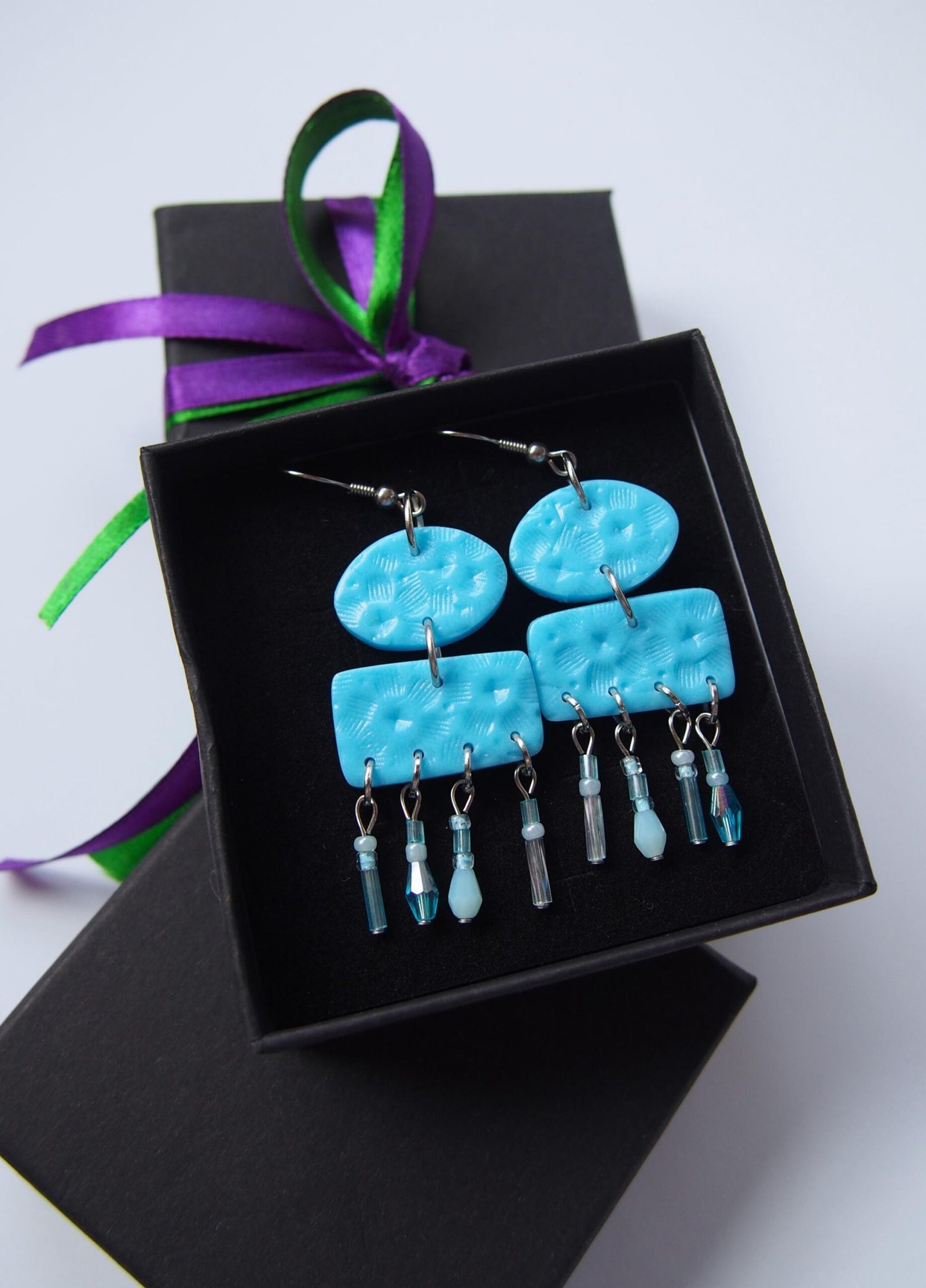 These handmade sky blue boho earrings are perfect for those who love dreamy, artistic, bohemian jewelry with a soft, airy vibe. Featuring a textured base in pastel blue and lightweight dangling beads, they’re a beautiful gift for her—or a unique, sky-inspired piece to add to your own collection.