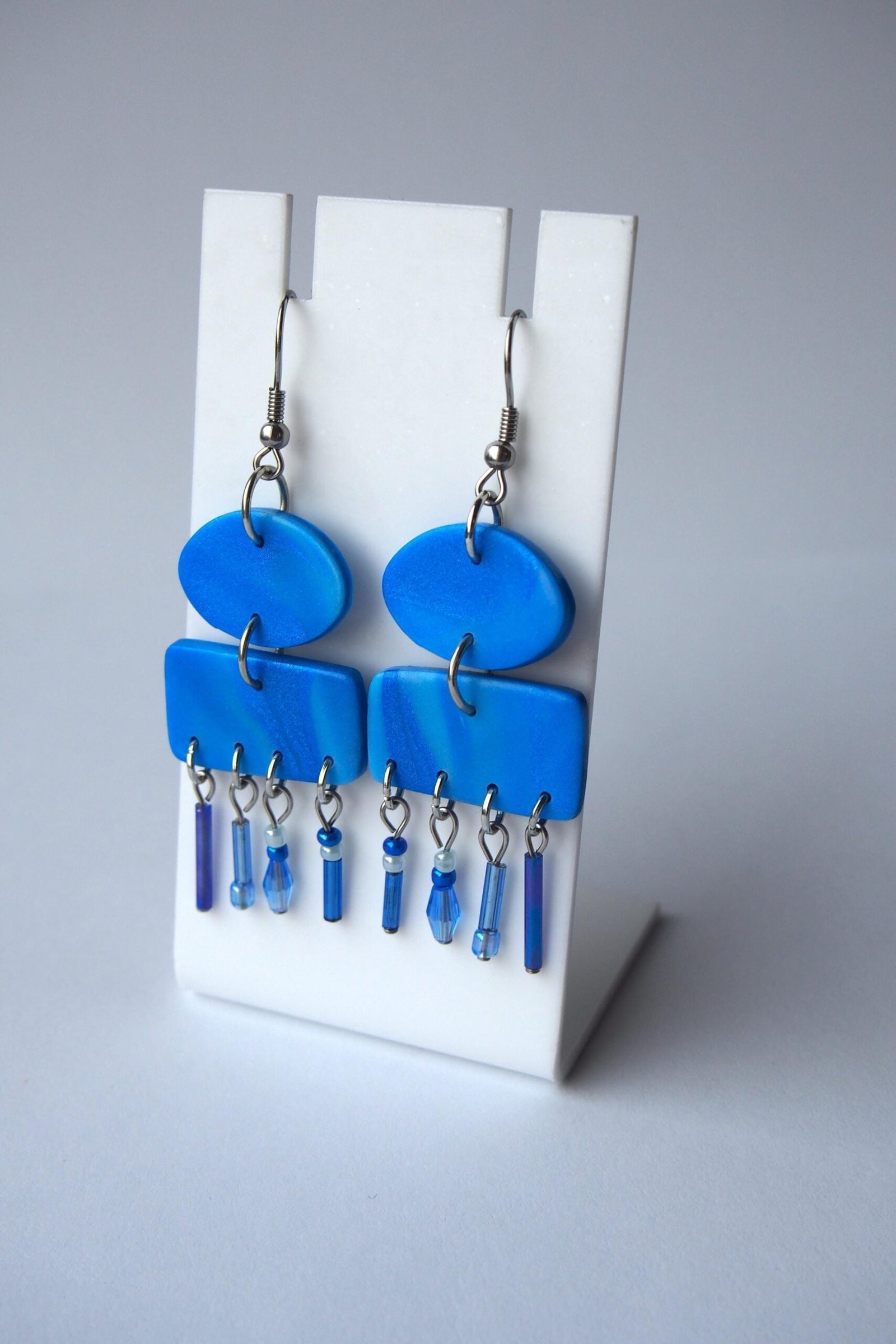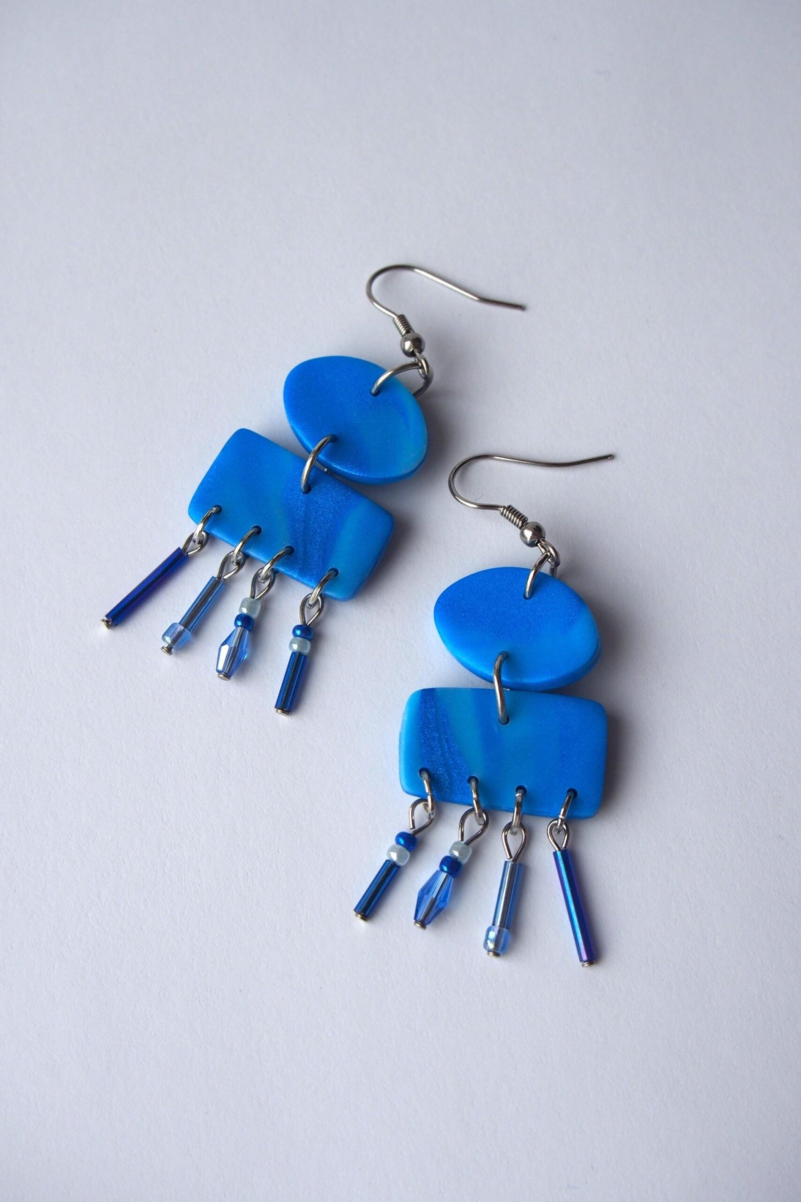 These handmade sky blue boho earrings are perfect for those who love minimalist, artistic jewelry with a light and airy vibe. Featuring simple geometric shapes in sky blue tones and matching dangling beads, they’re a beautiful gift for her—or a unique celestial statement piece to add to your own collection.